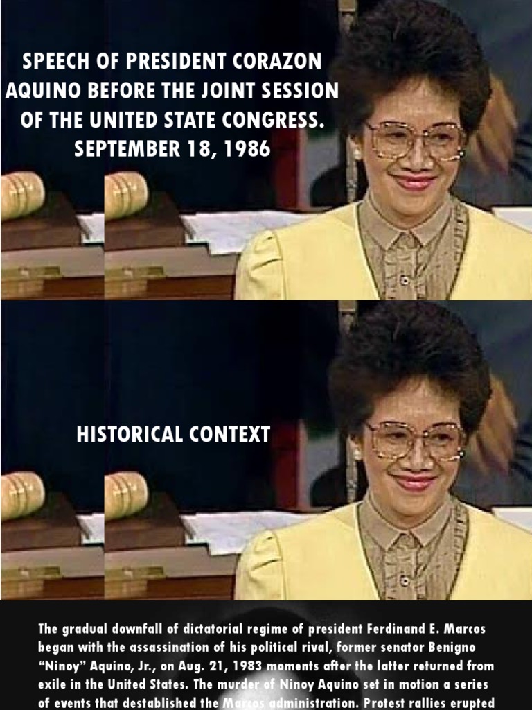 He was cory's executive secretary who was tasked of writing a speech but was unable to finish that made cory. Three years ago, i left america in grief to bury my husband, ninoy aquino. Addressing the house, she delivered a historic speech that senate majority leader robert dole told her, cory, you hit a home run. and house minority whip. Born to a political family and later married to a popular politician, corazon cojuangco aquino. Congress september 18,1986 gabutina, guerra, labrador, lalic, lambengco.